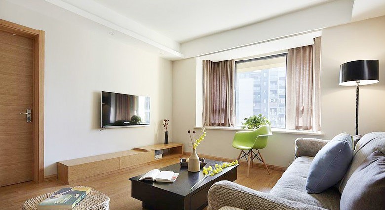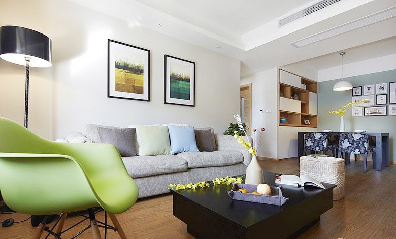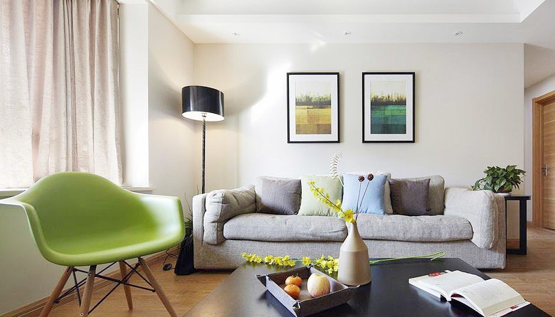没有富丽堂皇的装饰,采用温馨的浅色,呈现出一片清新、典雅的氛围。客厅整体以现代优雅的格调装修,通过现代质感的布艺沙发搭配精致的落地灯,整个客厅给人一种舒适轻松的现代感。