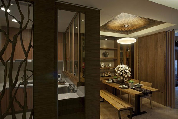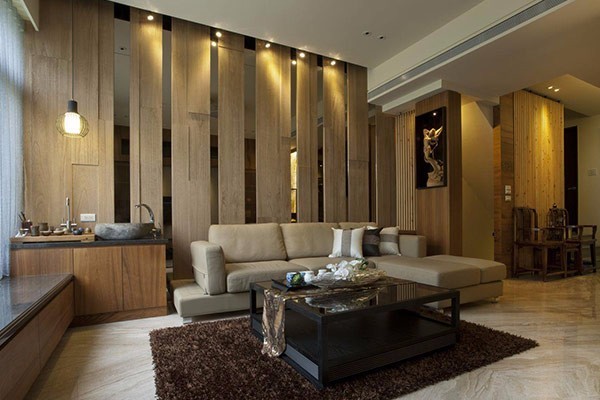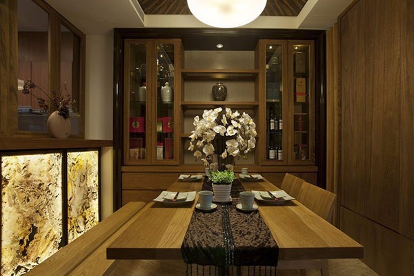 本案的设计中我们大量采用了纯天然的木料,设计重点就是光的运用,在一个空间规划完成后我们就会根据空间动线来研究光的需求量,另外也会根据立面上的美观性进行一系列的补光设计,讲究明暗对比,和重点突出照明,同样也达到节能环保的设计要求。