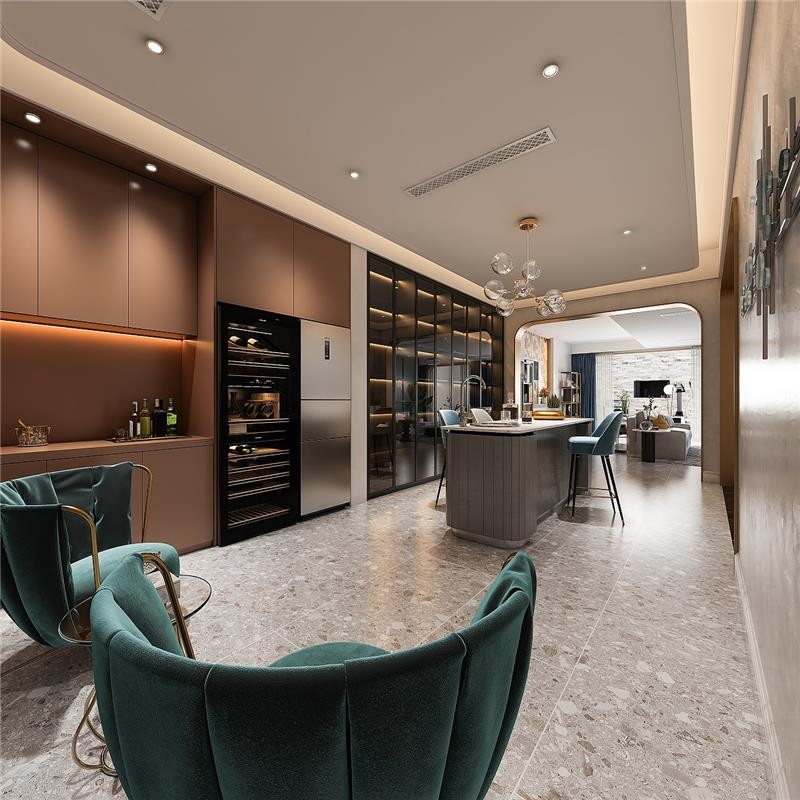 屋主是位十年打拼的成功商人,追求精致优雅的生活,整体365老玩家入口_bet3365info_下载365 定义为优雅法式,降屋主喜欢的红酒、茶具等元素加入其中,搭配睿智冷静的松石绿、自然华贵的金以及中性的色调在空间中平衡出沉稳而不失高贵的特质,体现新时代对生活品质的追求。